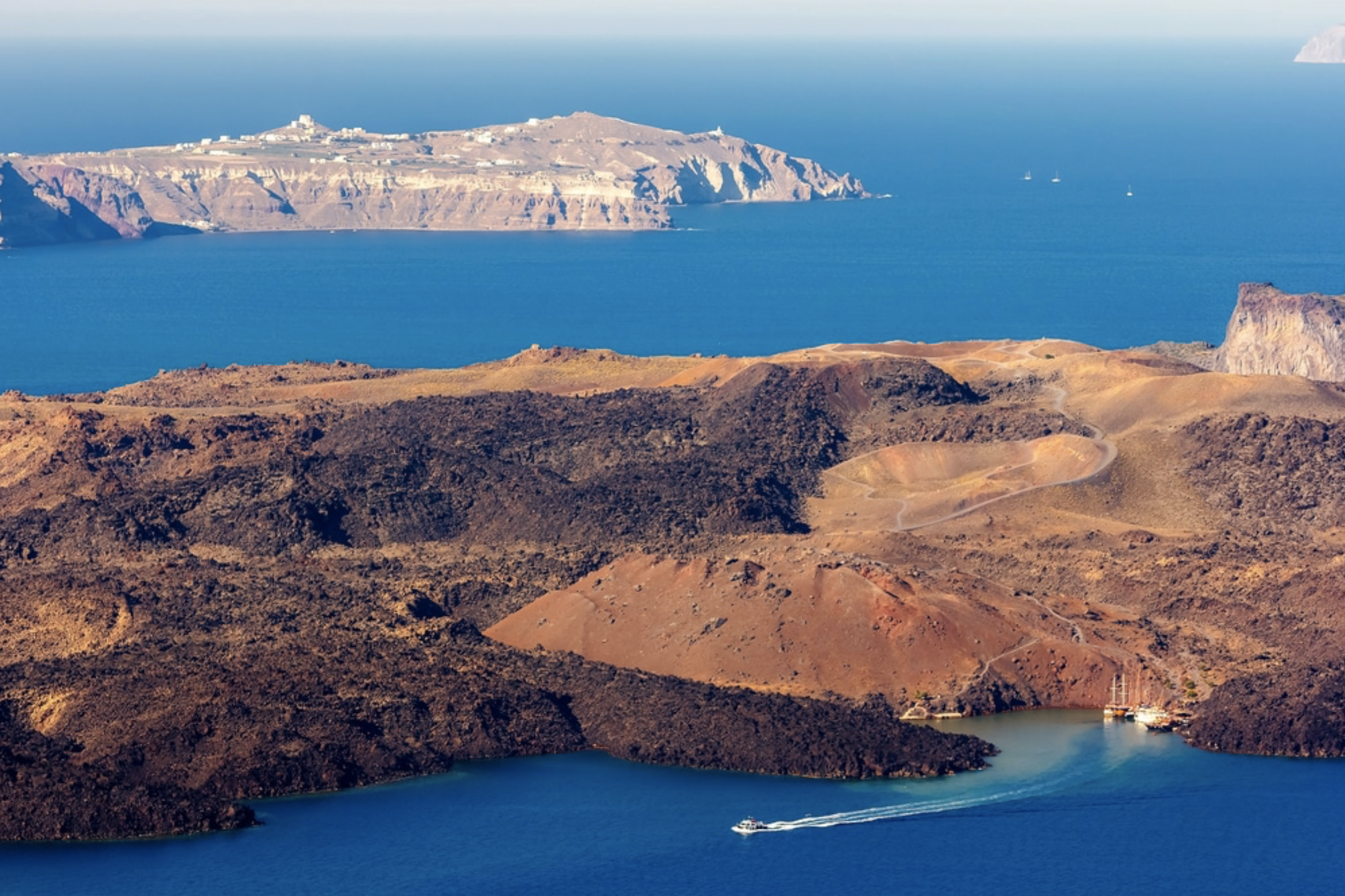 • Sail to Santorini, one of the most famous and beautiful islands in the Cyclades. Visit the town of Fira and its stunning views of the caldera and Aegean Sea. Explore the ancient ruins of Akrotiri and take in the beauty of the island's unique landscape. Spend the night in Santorini and enjoy the local cuisine and romantic ambiance.