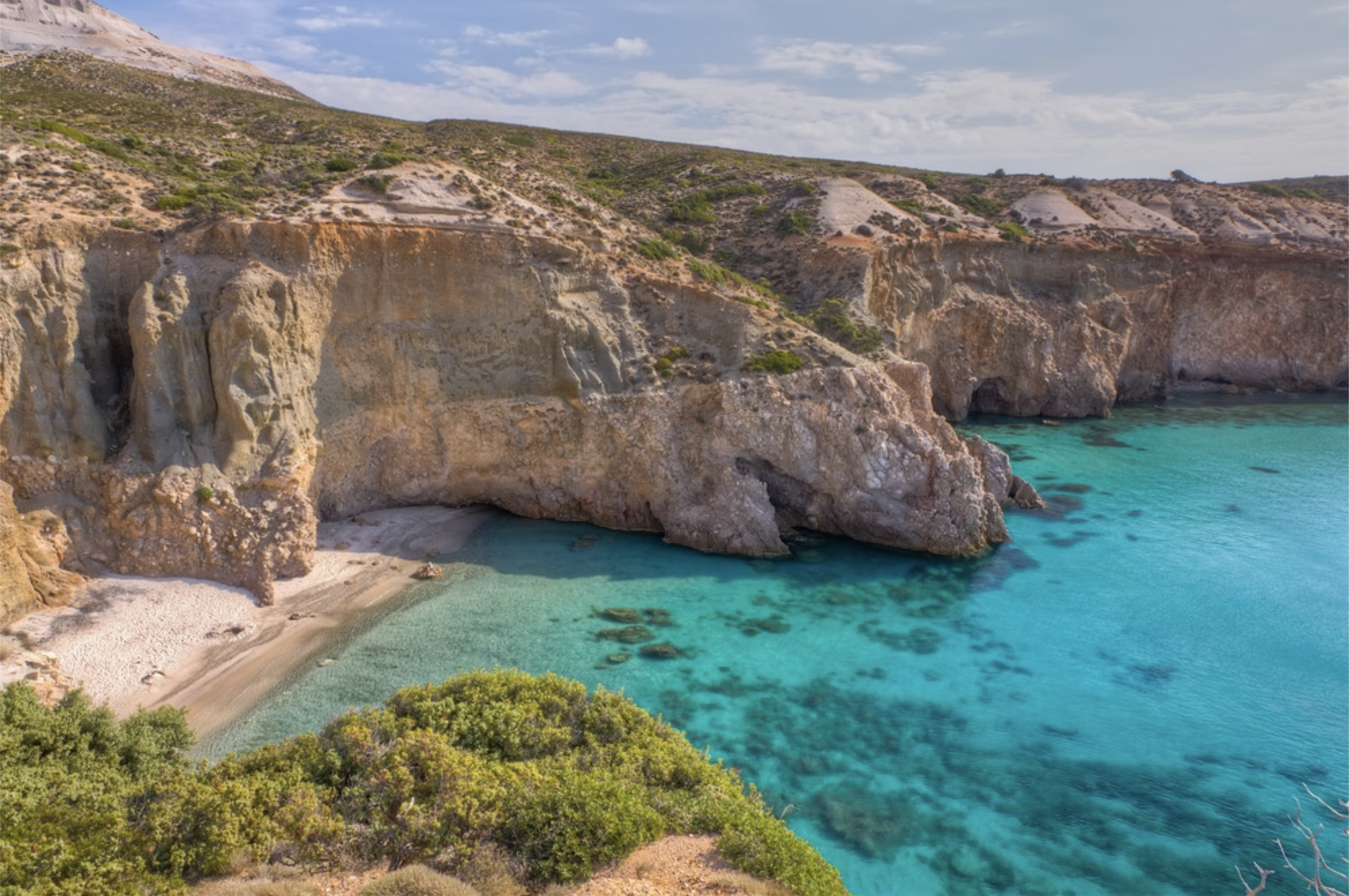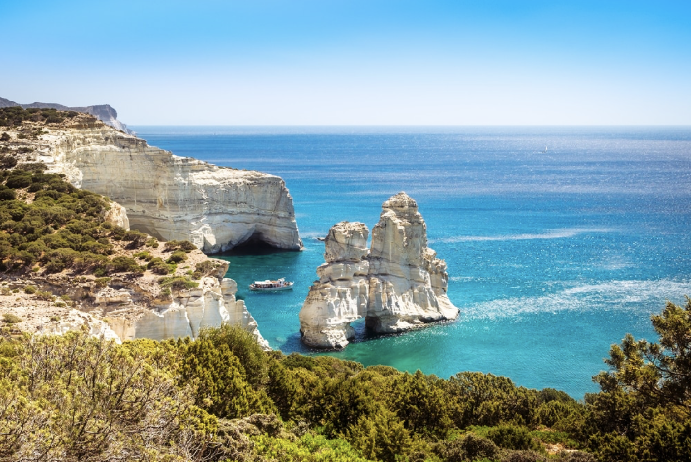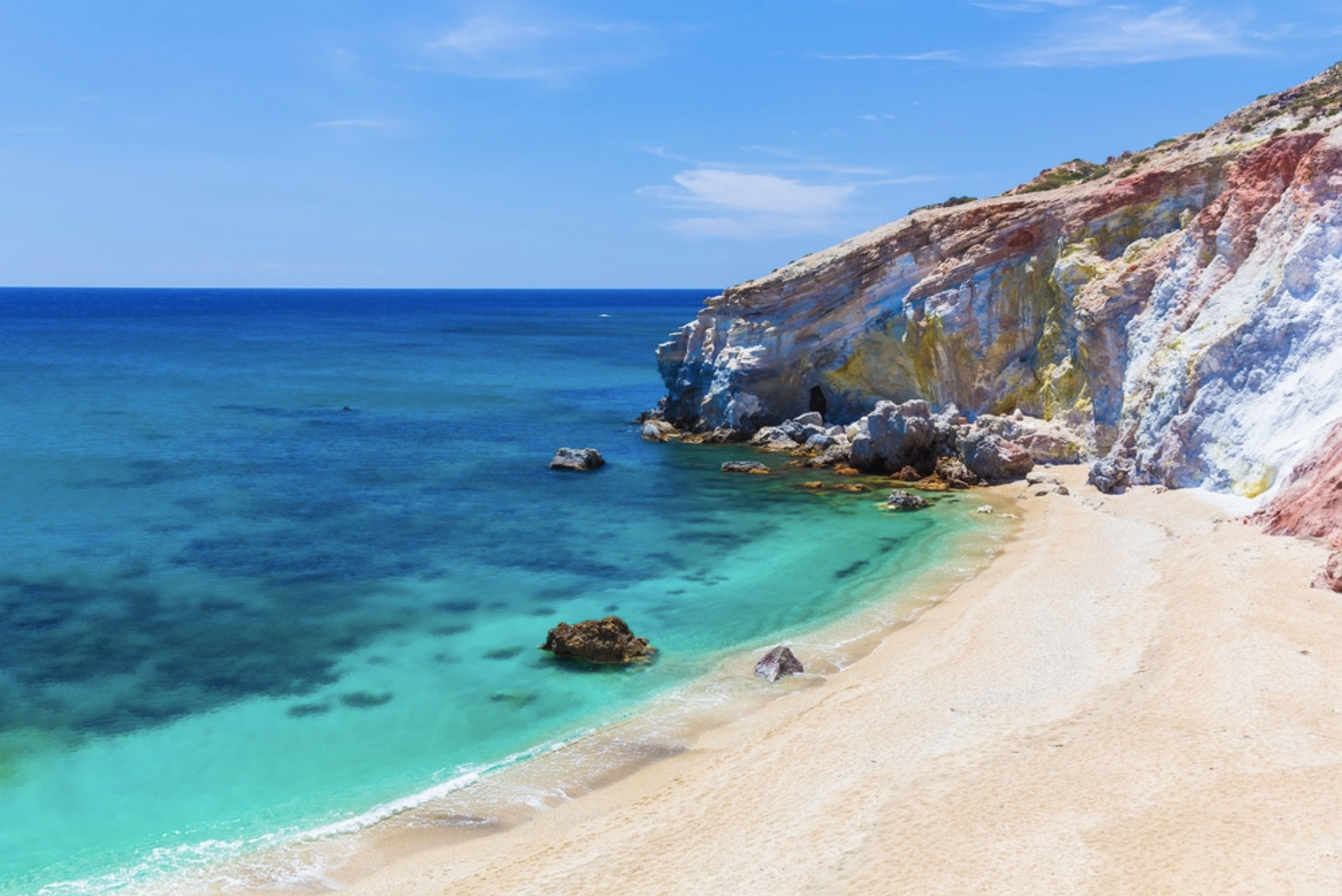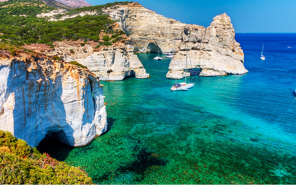 • Sail to the island of Milos, known for its stunning beaches and colorful rock formations. Spend the day exploring the island and its many attractions, including the catacombs, the fishing village of Klima, and the volcanic landscape of Sarakiniko Beach.